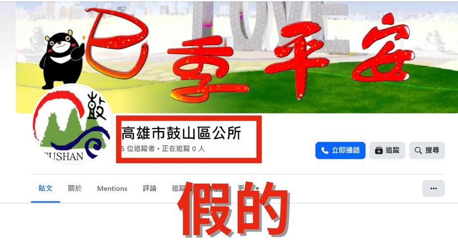 請認明高雄市鼓山區公所【唯一官方社群】:https://www.facebook.com/KCG.GUSHAN